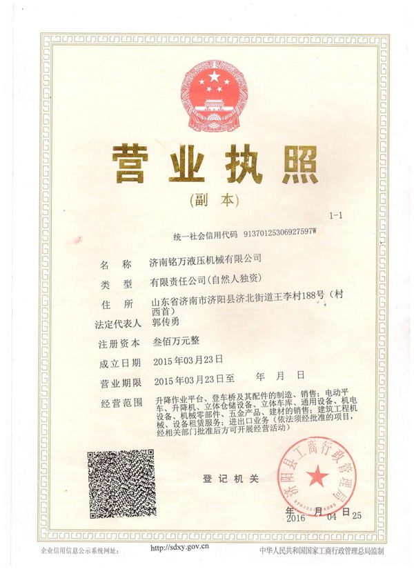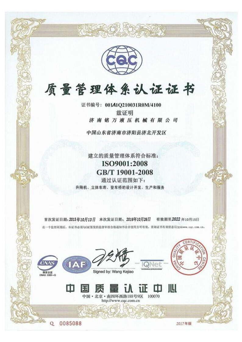 濟(jì)南銘萬(wàn)液壓機(jī)械有限公司【原濟(jì)南機(jī)械廠】,是全國(guó)制造液壓升降機(jī)、升降平臺(tái)的廠家,產(chǎn)品有八大系列六十多個(gè)品種,規(guī)格齊全、質(zhì)量穩(wěn)定、安全可靠、方便快捷;產(chǎn)品銷往全國(guó)各地,深受用戶好評(píng)。升降機(jī)廠家技術(shù)力量雄厚,產(chǎn)品設(shè)計(jì)先進(jìn)、工藝成熟、實(shí)驗(yàn)檢測(cè)手段完善,“質(zhì)量第一,用戶至上”是我們的宗旨。 本公司采用先進(jìn)的管理手段,嚴(yán)密的質(zhì)量監(jiān)控體系和良好的售后服務(wù)隊(duì)伍為我們的產(chǎn)品走向市場(chǎng)創(chuàng)造......